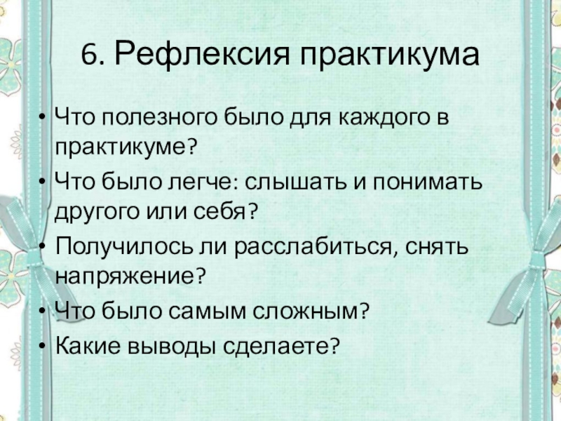 Слайд 126. Рефлексия практикума