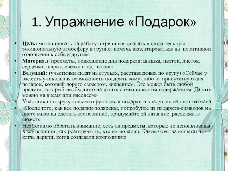 Слайд 41. Упражнение «Подарок»