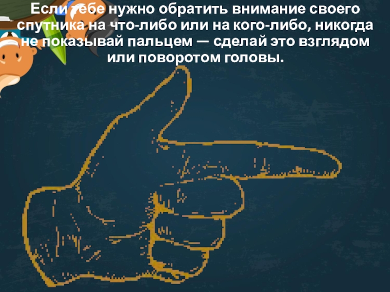 кого-либо, никогда не показывай пальцем — сделай это взглядом или поворотом головы.