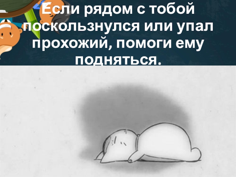 Слайд 21Если рядом с тобой поскользнулся или упал прохожий, помоги ему подняться.