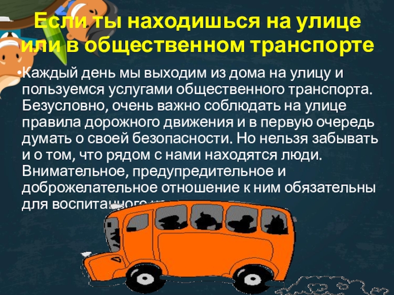 Слайд 9Если ты находишься на улице или в общественном транспорте