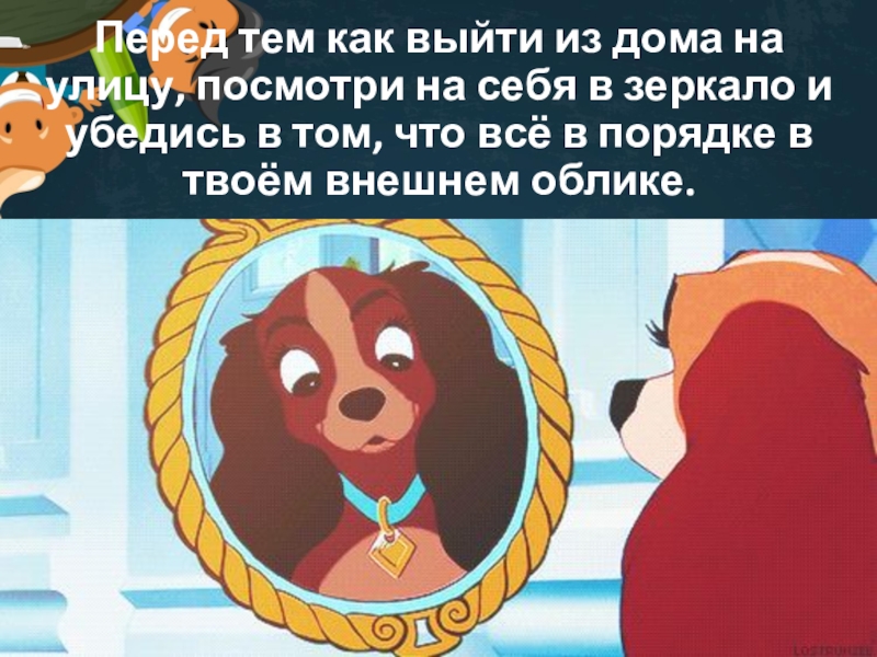 Слайд 18Перед тем как выйти из дома на улицу, посмотри на себя