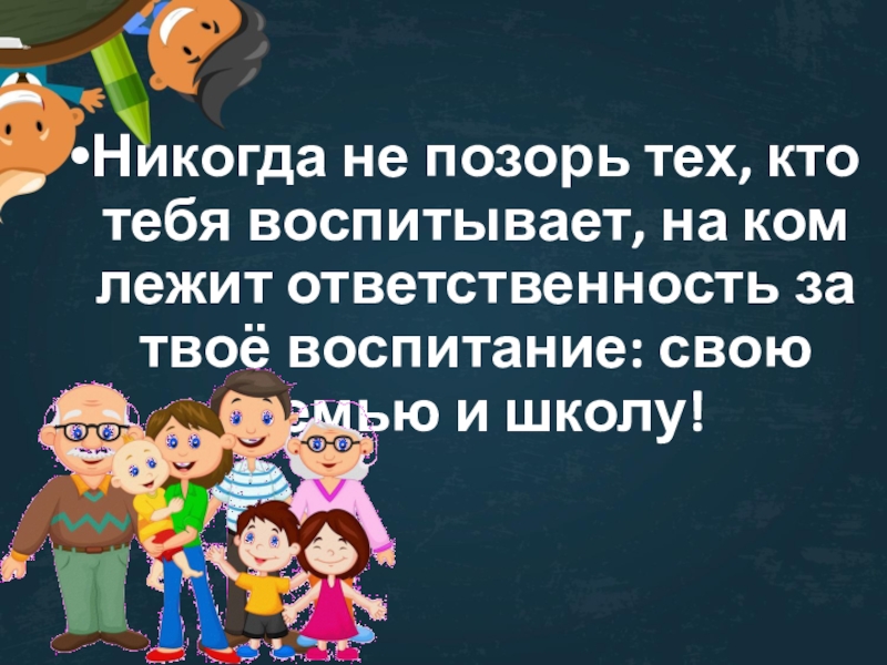 Слайд 8Никогда не позорь тех, кто тебя воспитывает, на ком лежит ответственность