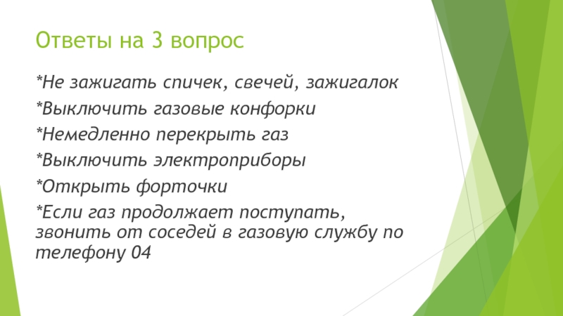 *Если газ продолжает поступать, звонить от соседей в газовую службу по телефону 04