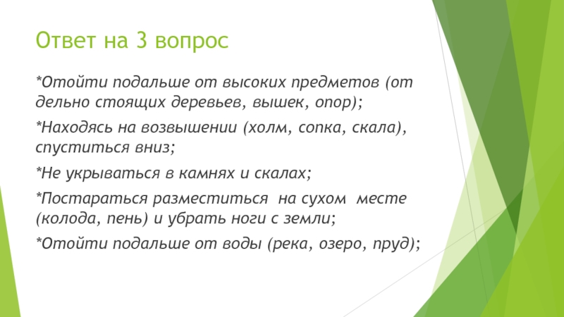 *Отойти подальше от высоких предметов (отдельно стоящих деревьев,