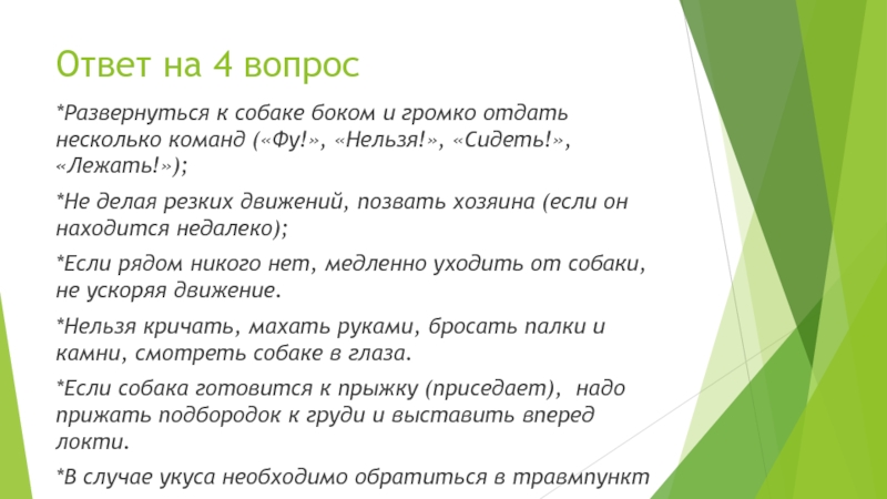 *Нельзя кричать, махать руками, бросать палки и камни, смотреть собаке в глаза.