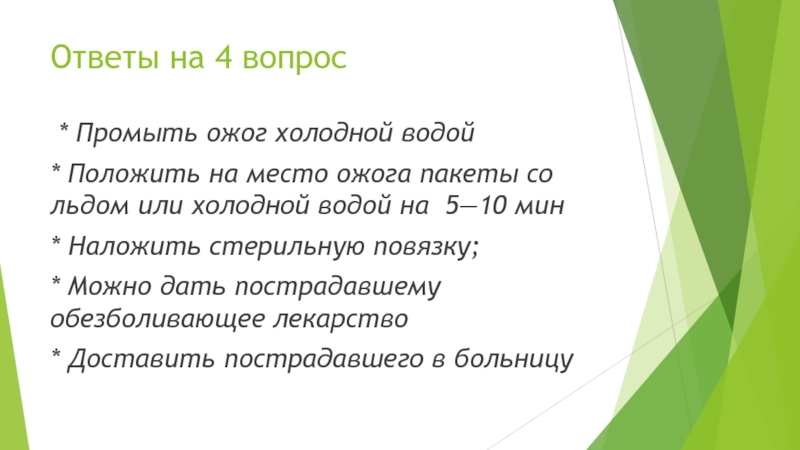 Вы решили развести костер и сварить уху, но котелок с кипящей водой перевернулся и ваш друг обжег руку. Ваши действия.