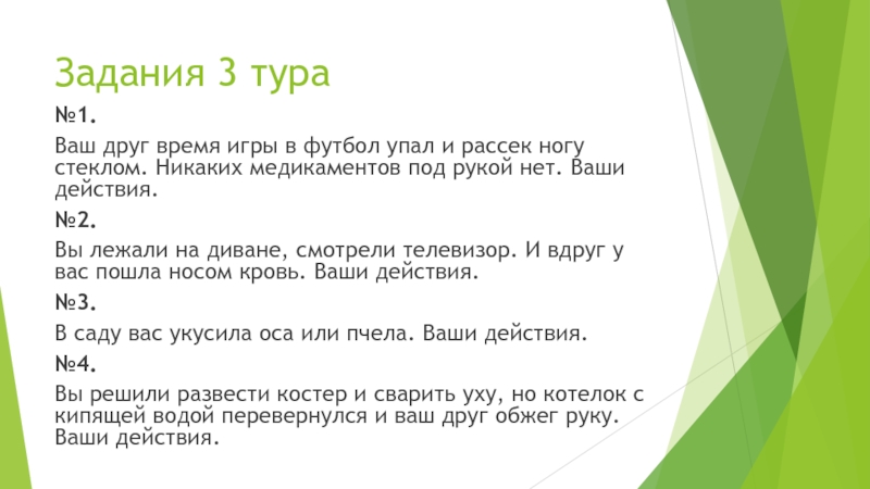 ногу стеклом. Никаких медикаментов под рукой нет. Ваши действия.