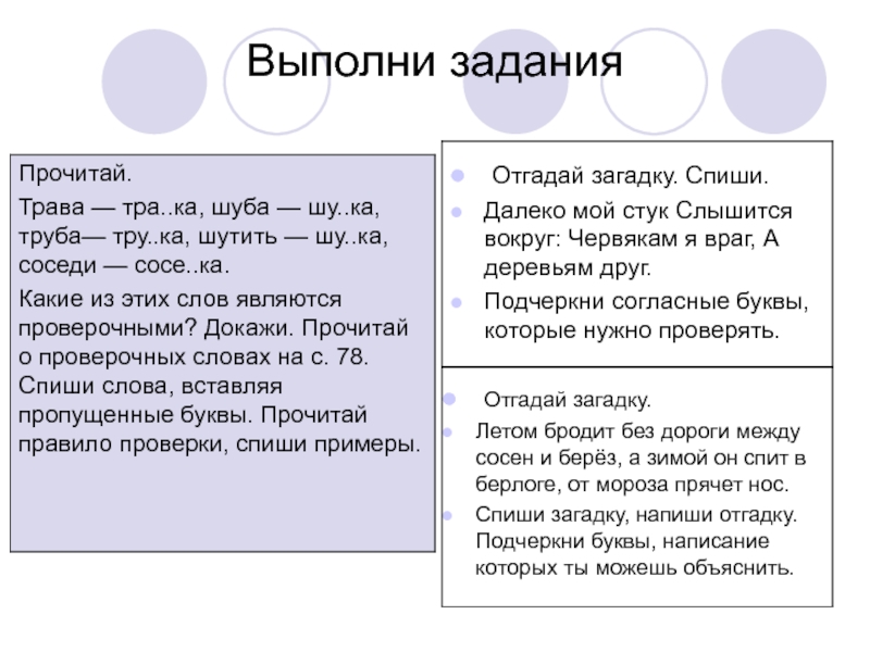 Спиши загадку, напиши отгадку. Подчеркни буквы, написание которых ты можешь объяснить.