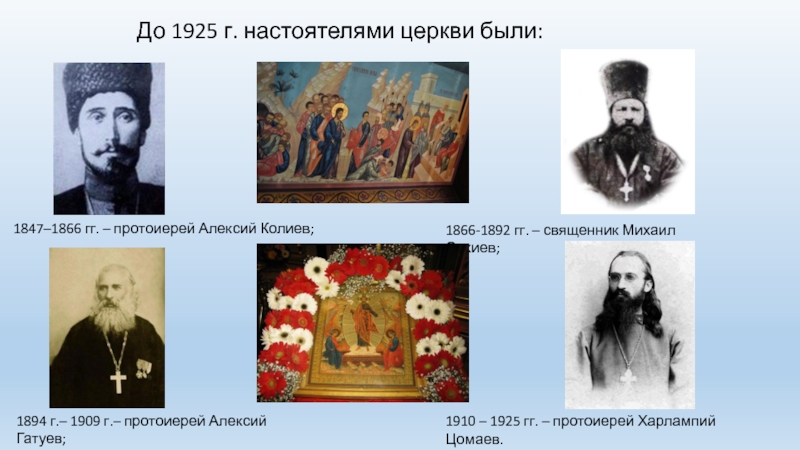 1910 – 1925 гг. – протоиерей Харлампий Цомаев.
