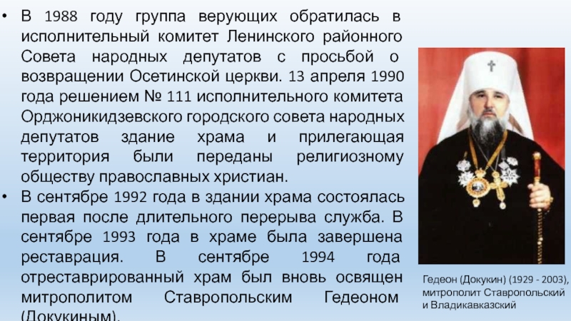 Гедеон (Докукин) (1929 - 2003), митрополит Ставропольский и Владикавказский