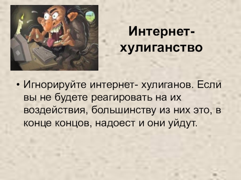 Игнорируйте интернет- хулиганов. Если вы не будете реагировать на их