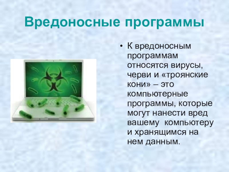 это компьютерные программы, которые могут нанести вред вашему компьютеру и хранящимся на нем данным.