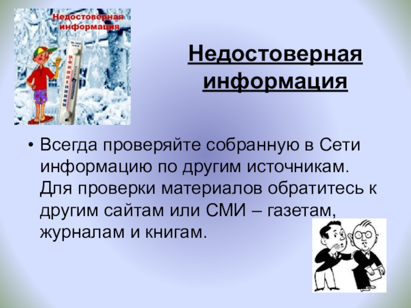 Всегда проверяйте собранную в Сети информацию по другим источникам.