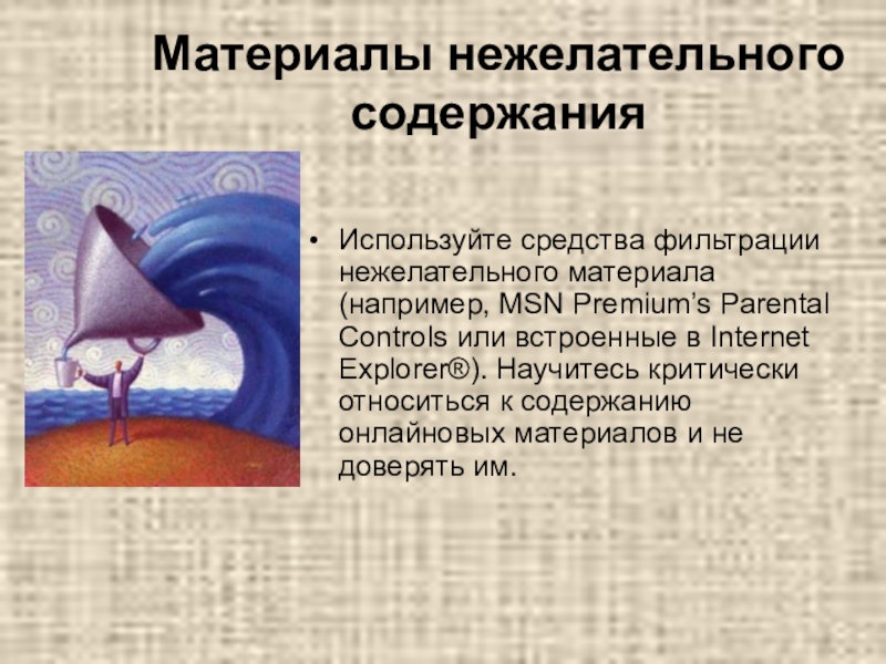 Используйте средства фильтрации нежелательного материала (например, MSN Premium’s