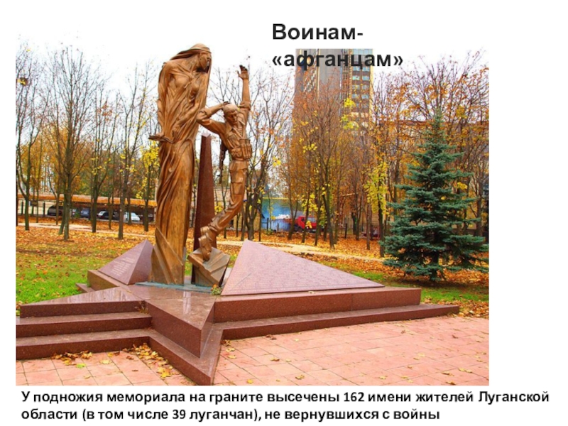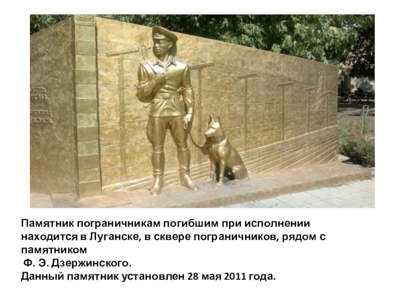 Слайд 23Памятник пограничникам погибшим при исполнении находится в Луганске, в сквере пограничников,