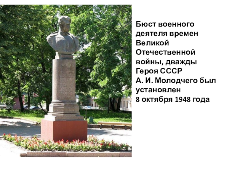 Слайд 15Бюст военного деятеля времен Великой Отечественной войны, дважды Героя СССР