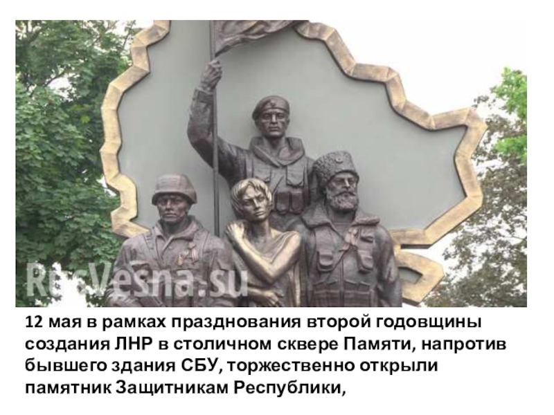 Слайд 2912 мая в рамках празднования второй годовщины создания ЛНР в столичном