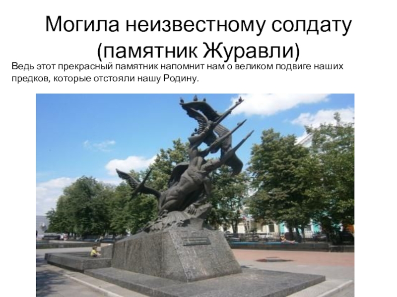 Слайд 7Могила неизвестному солдату (памятник Журавли)
