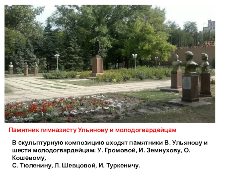 Слайд 30Памятник гимназисту Ульянову и молодогвардейцам