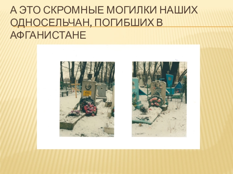 Слайд 10А это скромные могилки наших односельчан, погибших в Афганистане