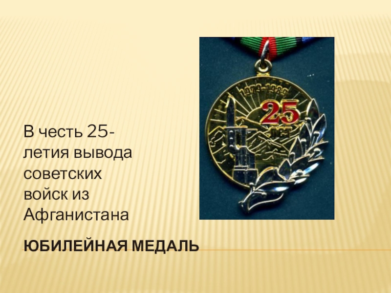 Юбилейная медальВ честь 25-летия вывода советских войск из Афганистана