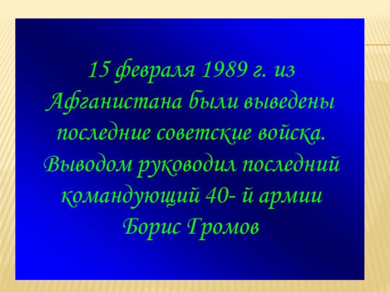 Презентация, доклад 15 февраля - День воина- интернационалиста