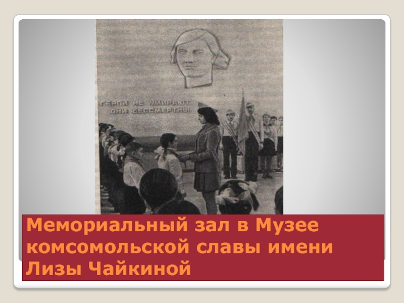 Слайд 9Мемориальный зал в Музее комсомольской славы имени Лизы Чайкиной