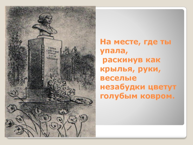 Слайд 10На месте, где ты упала,