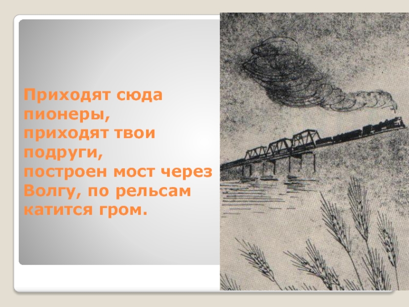построен мост через Волгу, по рельсам катится