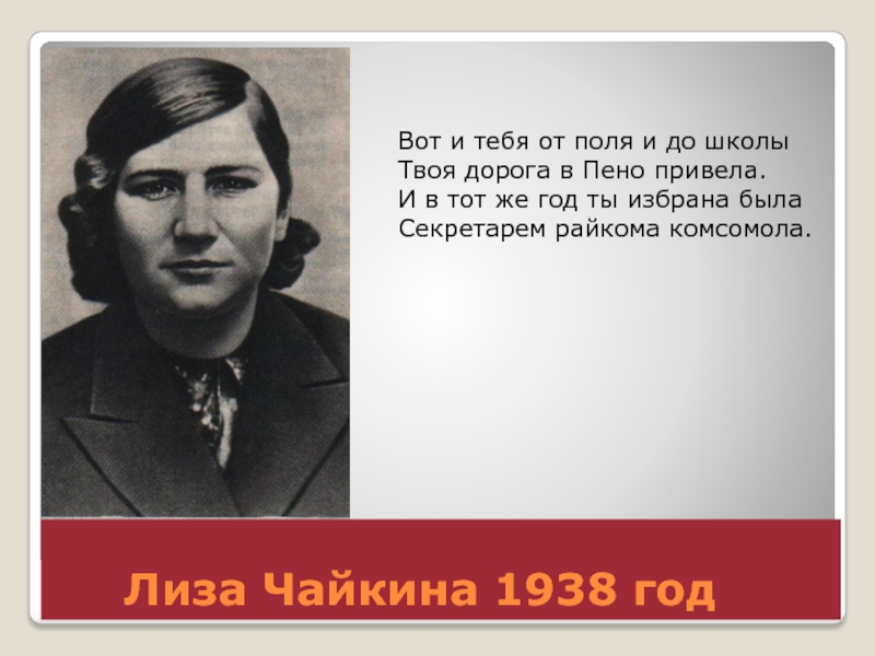 Слайд 5 Лиза Чайкина 1938 год