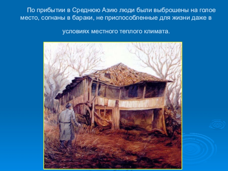 Слайд 7 По прибытии в Среднюю Азию люди были выброшены