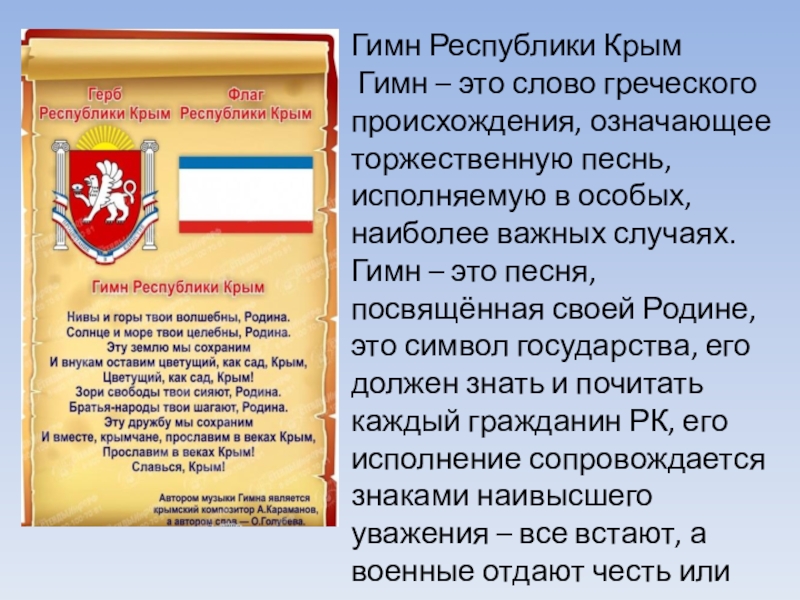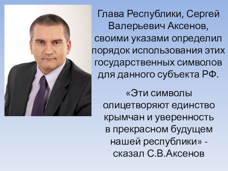 «Эти символы олицетворяют единство крымчан и уверенность в прекрасном будущем нашей республики» - сказал С.В.Аксенов