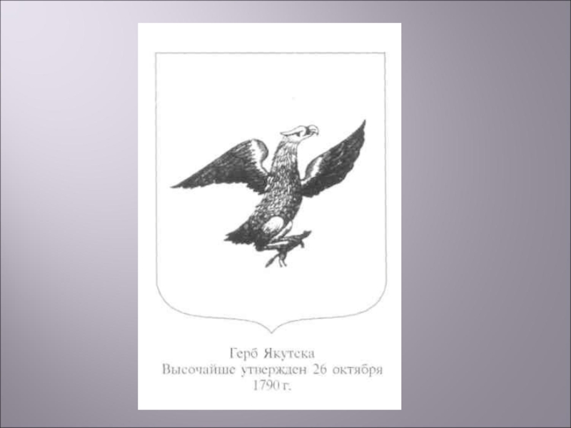 ГЕРБГород Якутск еще в середине XVII века имел свой герб( в виде изображения орла, держащего в когтях