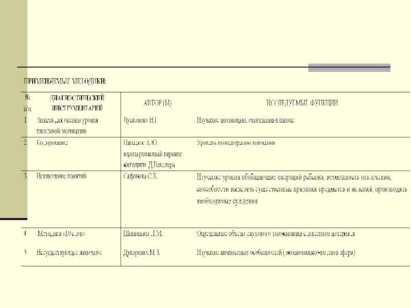 выявление индивидуальных особенностей интеллектуальной, мнестической, мотивационной и эмоционально-волевой сфер учащихся первых классов;