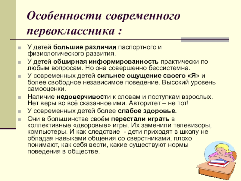 У современных детей сильнее ощущение своего «Я» и более свободное независимое поведение. Высокий уровень самооценки.