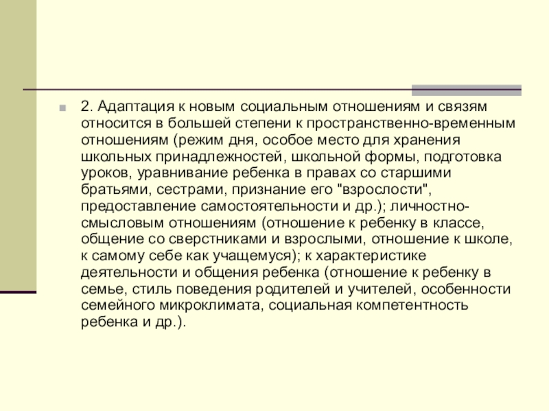 2. Адаптация к новым социальным отношениям и связям относится в большей