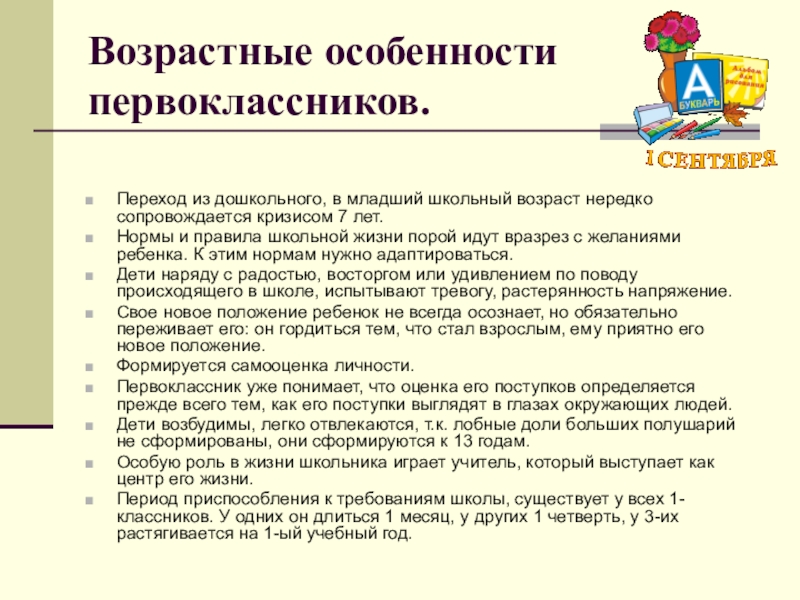 Переход из дошкольного, в младший школьный возраст нередко сопровождается