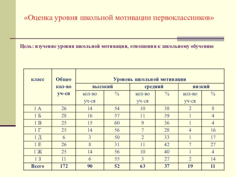 Слайд 17«Оценка уровня школьной мотивации первоклассников»