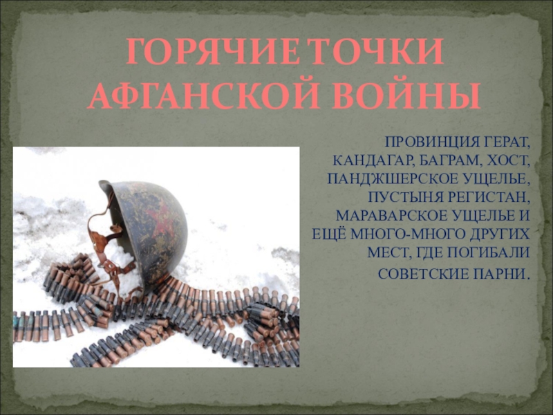 ГОРЯЧИЕ ТОЧКИ АФГАНСКОЙ ВОЙНЫ