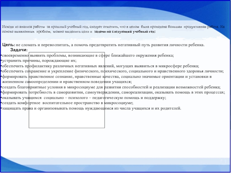 обеспечить профилактику различных негативных явлений, могущих выявиться в микросфере ребенка;