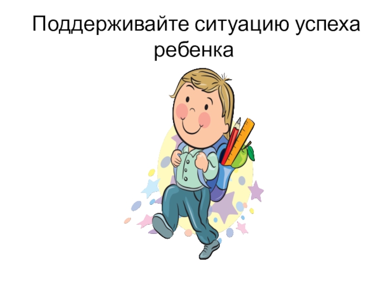 Слайд 10 Поддерживайте ситуацию успеха ребенка