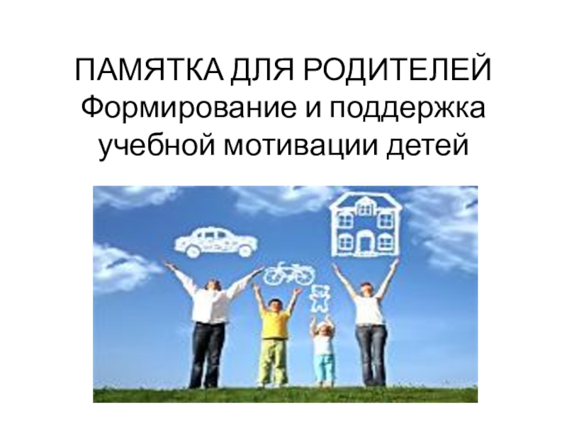 Слайд 1ПАМЯТКА ДЛЯ РОДИТЕЛЕЙ Формирование и поддержка учебной мотивации детей