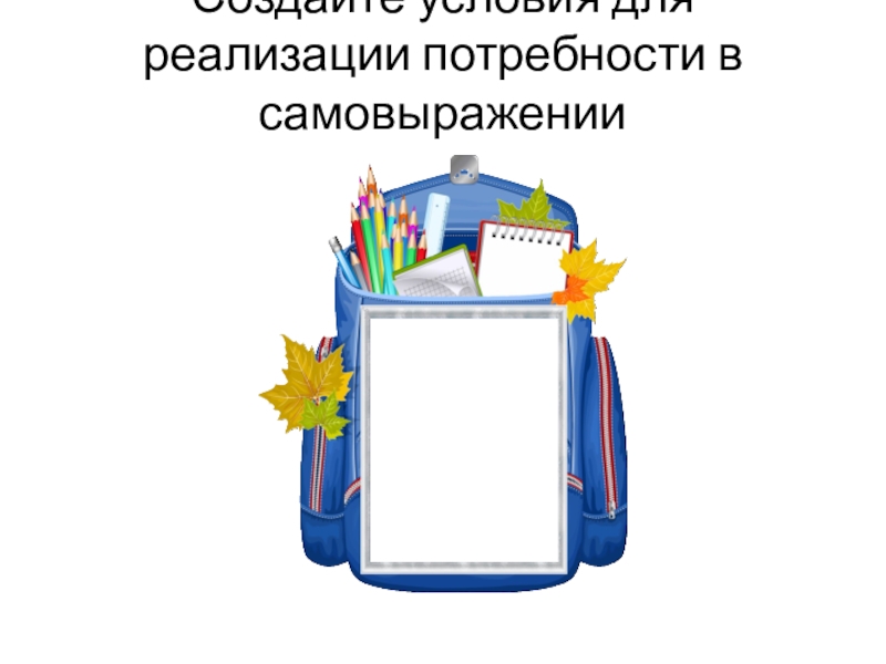 Слайд 6Создайте условия для реализации потребности в самовыражении