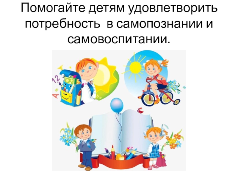 Слайд 7Помогайте детям удовлетворить потребность в самопознании и самовоспитании.