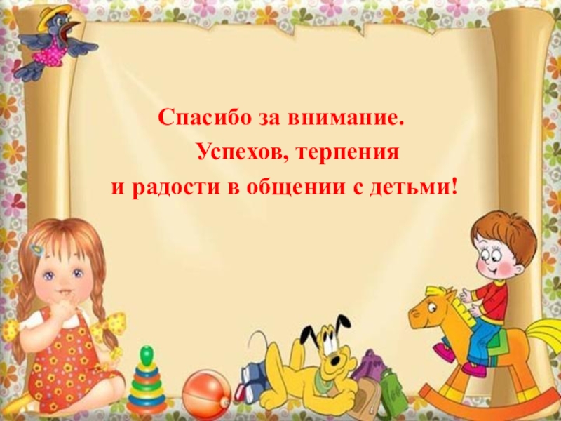 Спасибо за внимание.  Успехов, терпенияи радости в общении с
