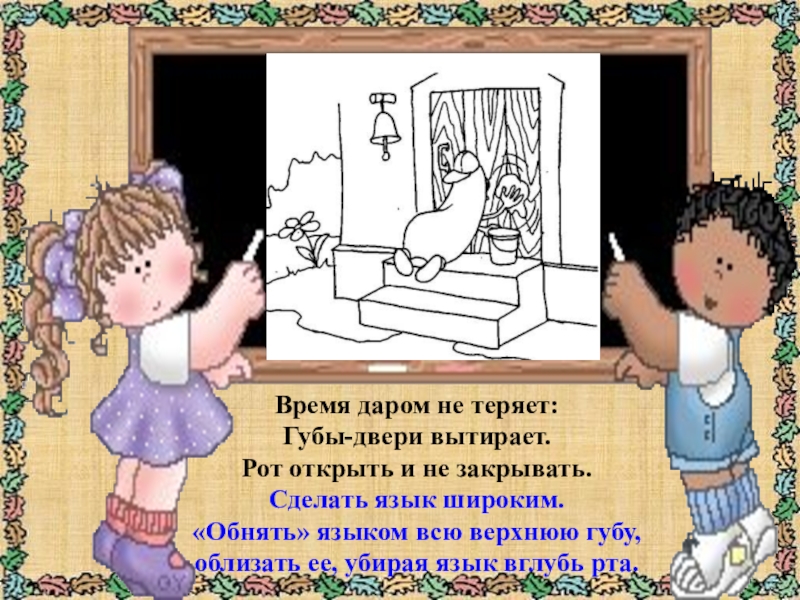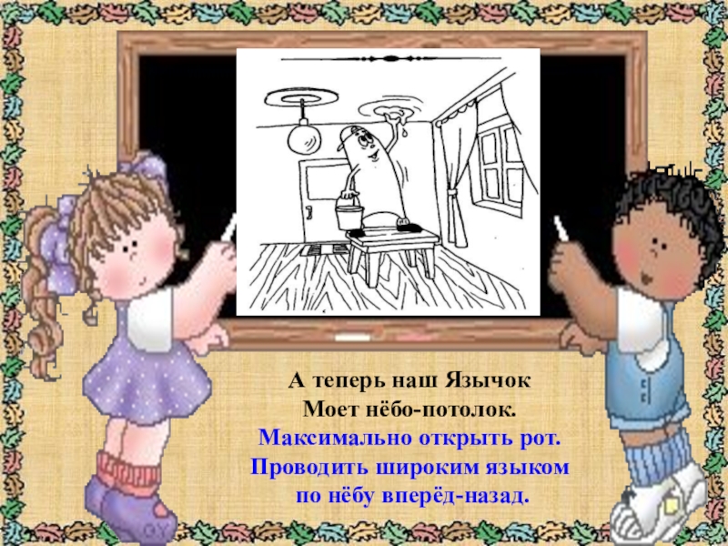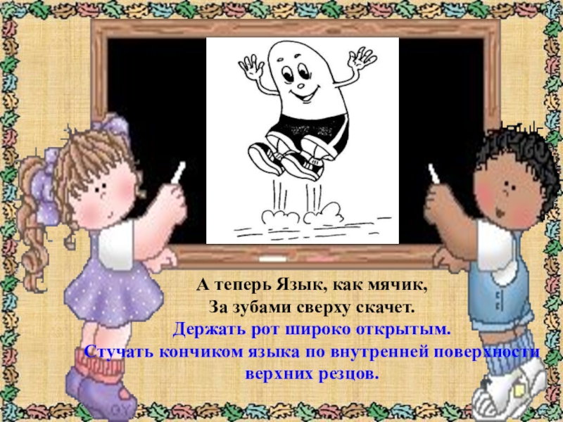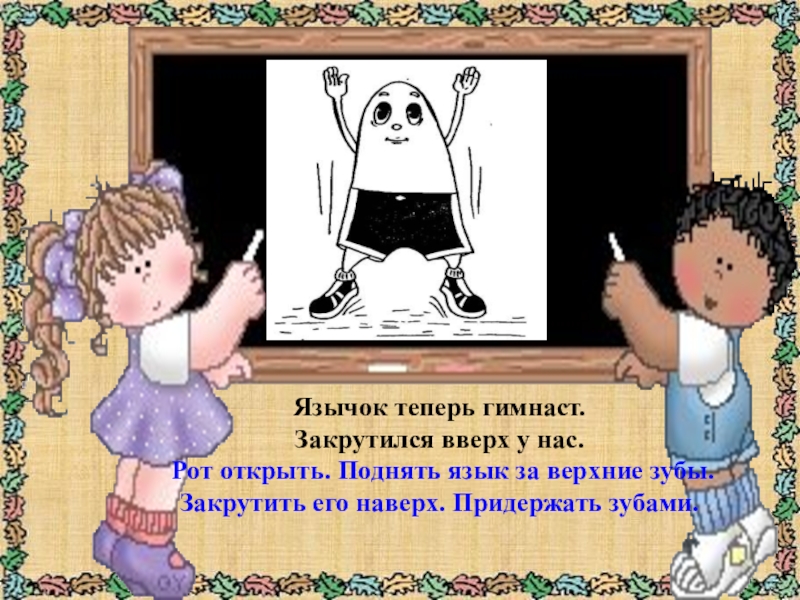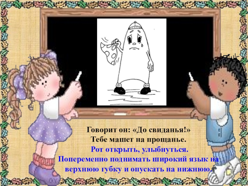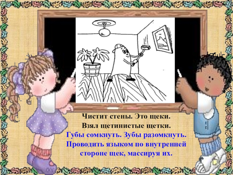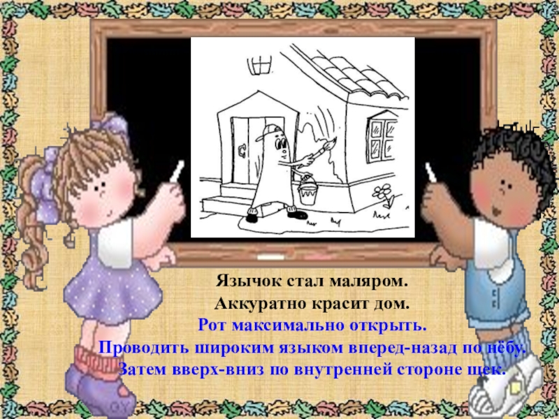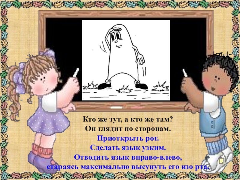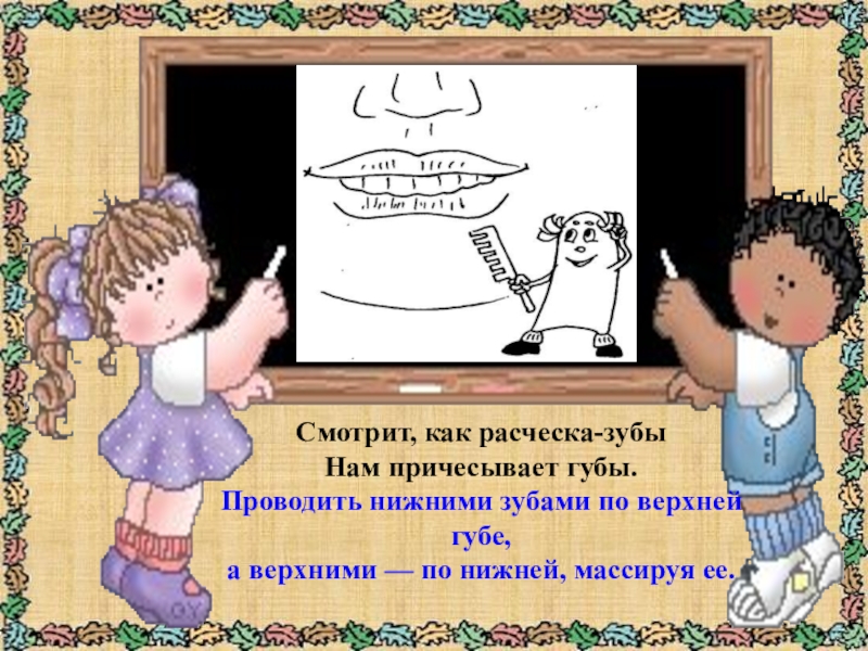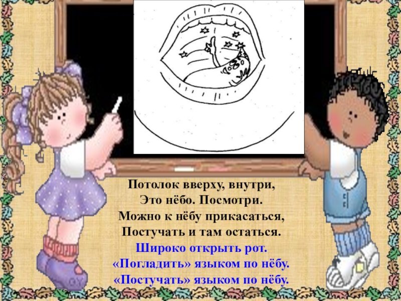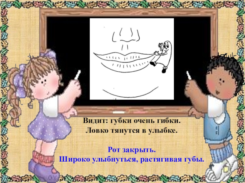 Губы сомкнуть. Зубы разомкнуть. Проводить языком