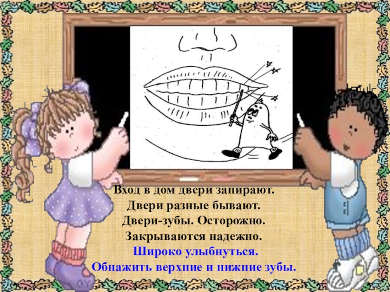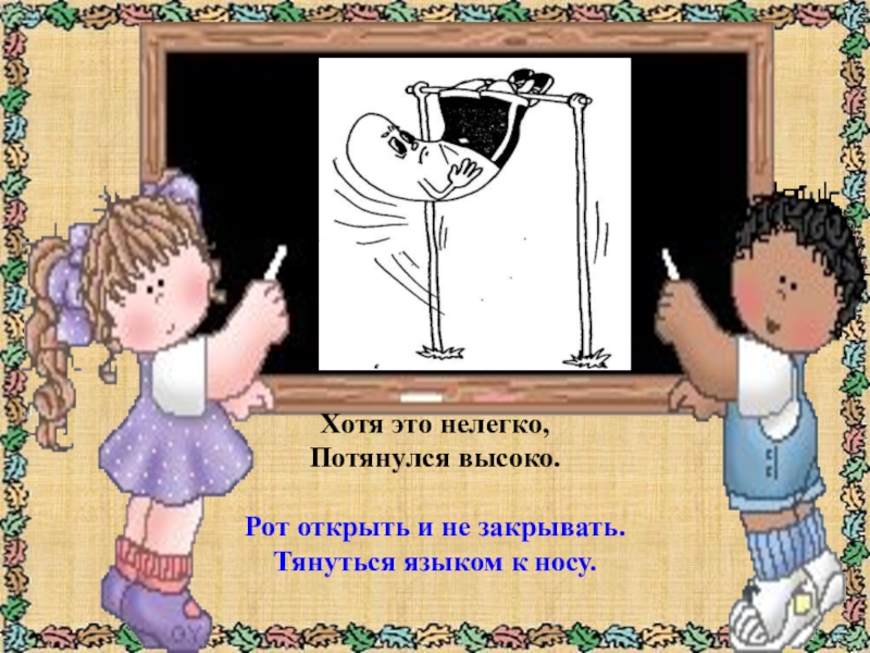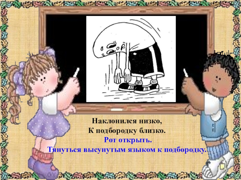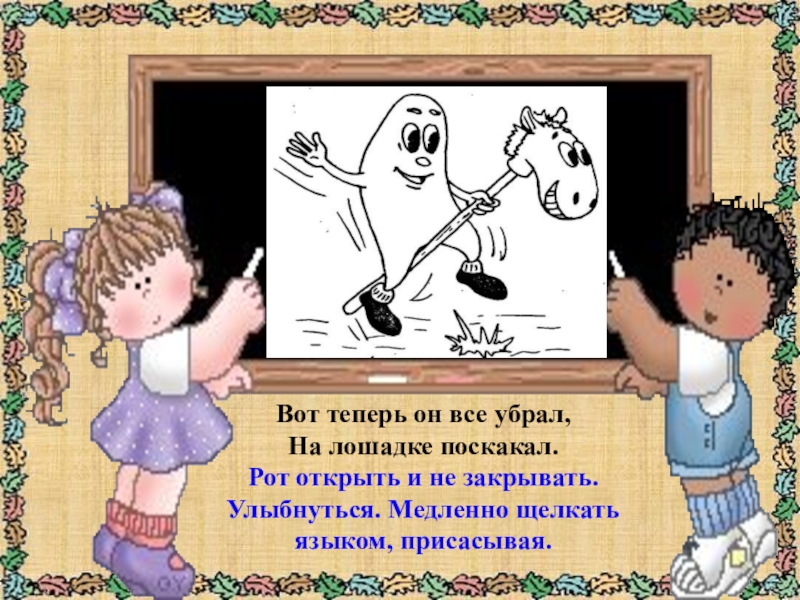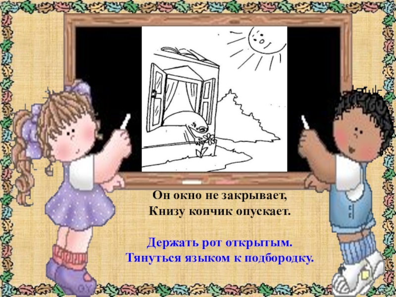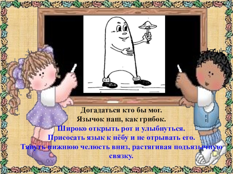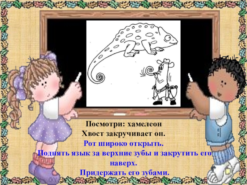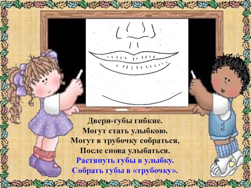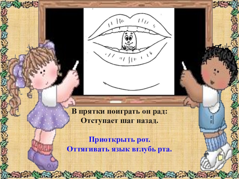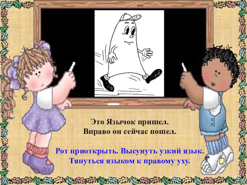 Губы сомкнуть. Зубы разомкнуть. Проводить языком