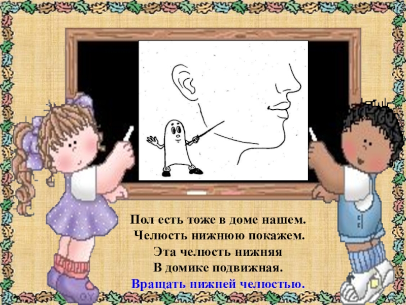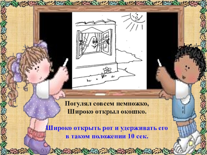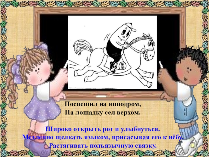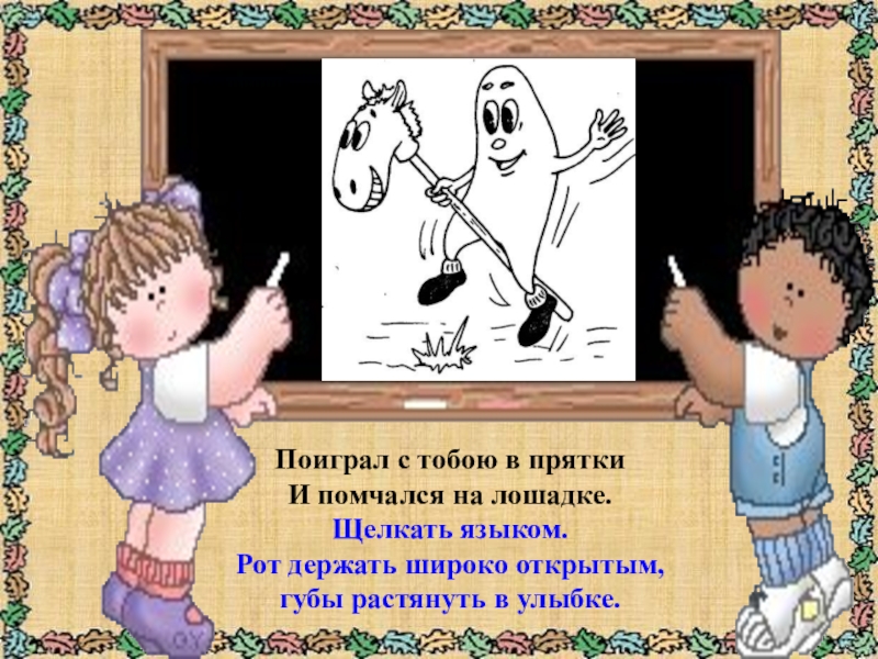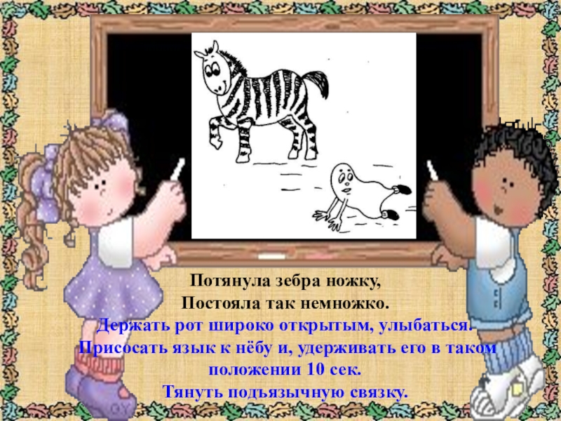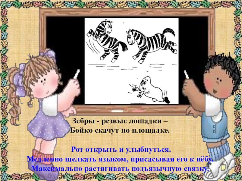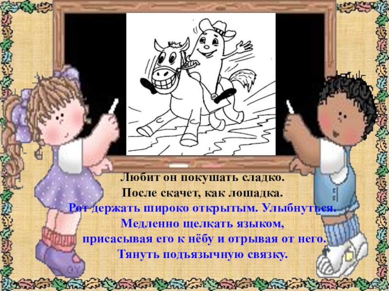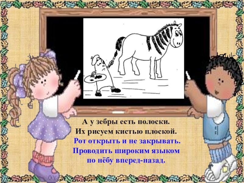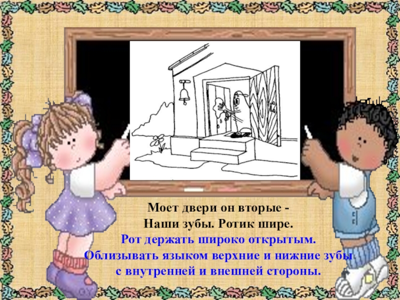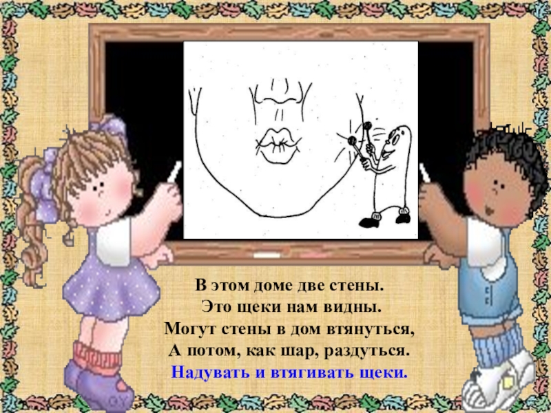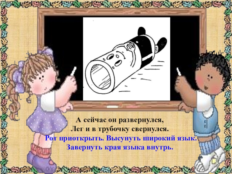 Губы сомкнуть. Зубы разомкнуть. Проводить языком