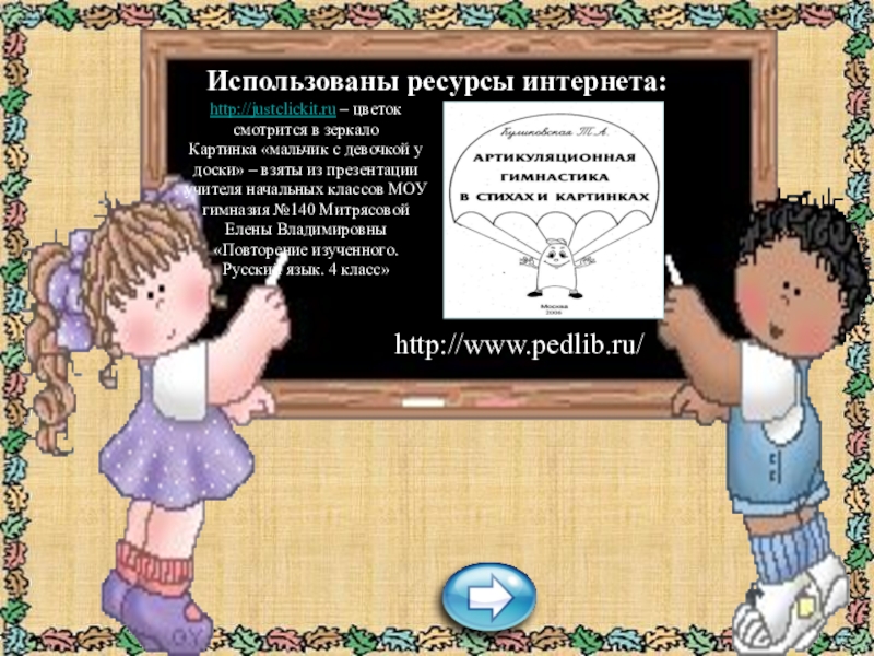 девочкой у доски» – взяты из презентации учителя начальных классов МОУ гимназия №140 Митрясовой Елены Владимировны «Повторение изученного.